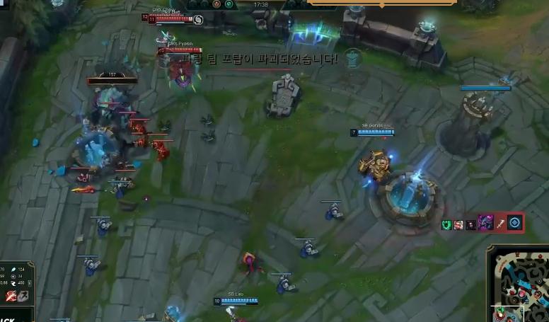 到了第二局,DRX的阵容出现了变化,但是Doran依然拿的是凯南,这种BP方式可能经常看去年GRF比赛的观众非常熟悉,不过这局Doran的发挥就很好,初期凯南一波单切对方C位,中期一波扛塔大招进场大到三人打出爆炸的AOE都是可圈可点的地方,而这局比赛的最后,Chovy的泰坦钩中了对方的厄斐琉斯,并给上大招,女枪直接扫出大招,厄斐琉斯被秒,失去了重要的输出位之后,SB的团战溃败,DRX顽强扳平比分。