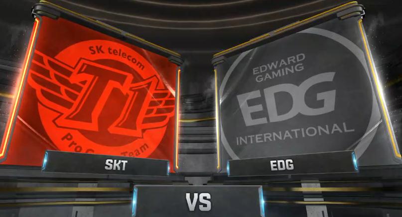 这场比赛发生之前的环境:2017年,EDG依然还是LPL的顶尖强队,虽然在春季赛仅仅是获得了季军,但是他们在夏季赛做足准备,在决赛上让二追三击败了RNG夺冠宣布了自己的王者归来,之后,EDG踌躇满志地进入了当年的全球总决赛,与SKT在同一个小组。SKT是当时LCK赛区夏季赛的亚军,凭借积分的优势以二号种子的身份晋级全球总决赛。当时双方上场的人员配置是这样的,EDG的上单是Mouse,打野是厂长,中单Scout,下路Iboy和Meiko,SKT的上单是Huni,打野Blank和Peanut轮换,中单Faker,下路是Bang和Wolf。