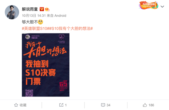 与此同时呢,由于这次S10决赛的门票实在是太太太太太难获取了,以至于官方解说们也不淡定了,能现场看总决赛都成了大胆的想法(我也好想去啊嘤嘤嘤)。